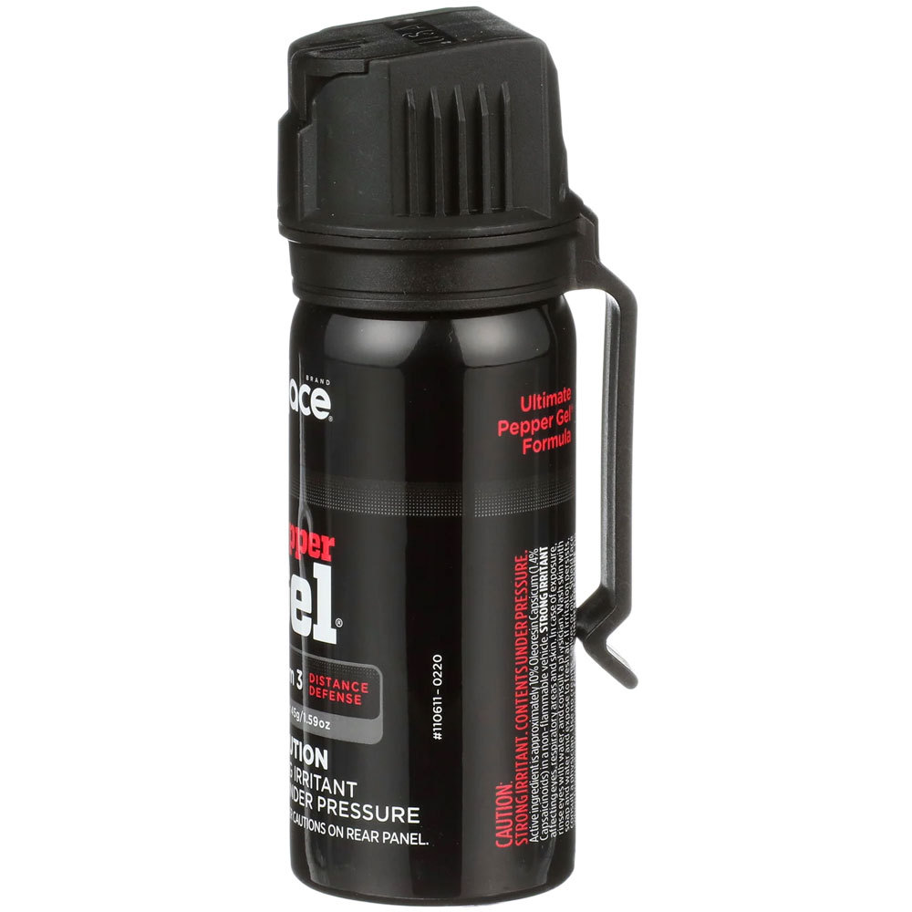 The Mace Pepper Gel Magnum 3 Model has a formulation of pepper spray in a gel base instead of a liquid stream. Its advanced delivery system enables single-handed deployment, making it great for self-defense. The pepper gel is a better choice than spray for outdoor defense since it has a longer range of 18 feet and stays on course in the wind. Furthermore, its sticky viscosity lets users target with accuracy, while there are no misfires or blowback. OC pepper spray, possessing a strength of 10%, is extremely sticky and can disable an assailant by obstructing their breathing and causing discomfort in their skin and reduced vision. This form of protection is made even more effective by the addition of an invisible UV dye that can only be detected using black light. This dye can come in handy during police investigations and can help identify attackers. Furthermore, pepper gel is nontoxic and nonflammable and will do any permanent damage to any surfaces or clothes, so it can be safely used both indoors and outdoors without worrying about obstructing property or hurting anyone nearby. The Mace Pepper Gel Magnum 3 Model includes an effective safety mechanism, which stops the pepper spray from being discharged unintentionally. Therefore, you can carry it without worrying about accidental activation. Made in the USA. Features: - Unit Size: 45 Gram 1.59oz - Fire-Rate: up to 20 bursts - Effective Range: 18 feet - Flip-top safety cap to prevent accidental spraying - Convenient belt clip for easy carrying